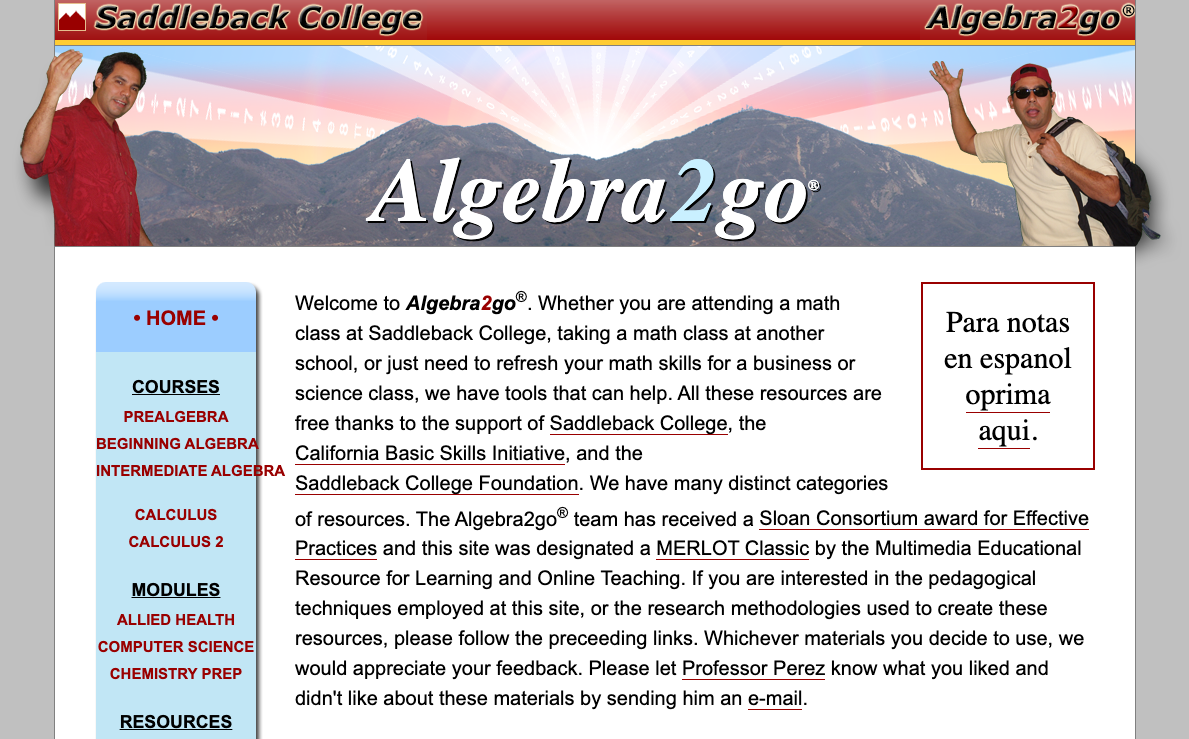 Explore other courses offered on the left side menu. Beginning Algebra is not yet finished (missing homework sets and topic quizzes), but there are wonderful Class Notes and Videos to aid in understanding Algebra.