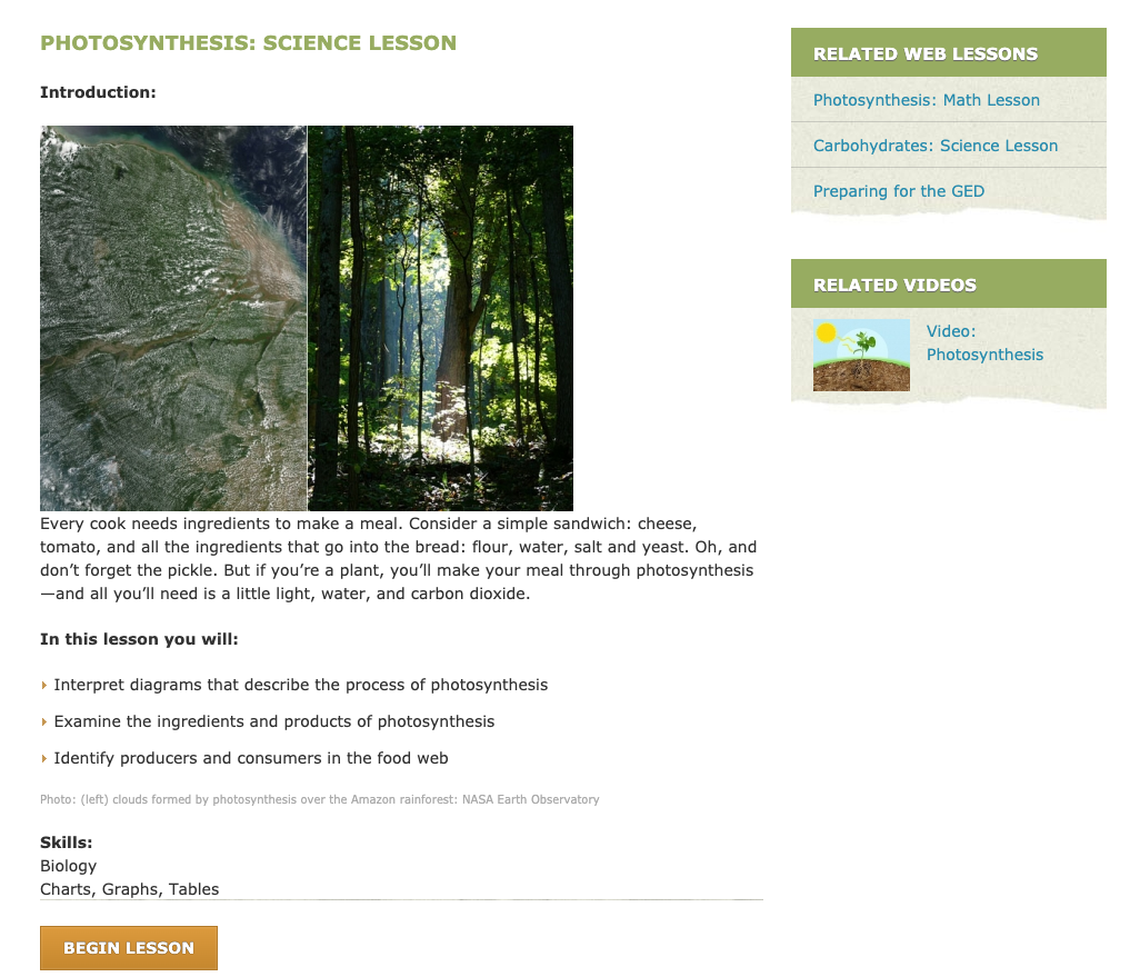 This Web site offers lessons on understanding what you read; studying and test prep; reading strategies; using the library; a few grammar topics; creative & personal writing; writing for work; vocabulary & dictionaries; basic math; ratios, averages & exponents; fractions, decimals & percentages; geometry; earth science, finance; earning & spending; and saving & investing