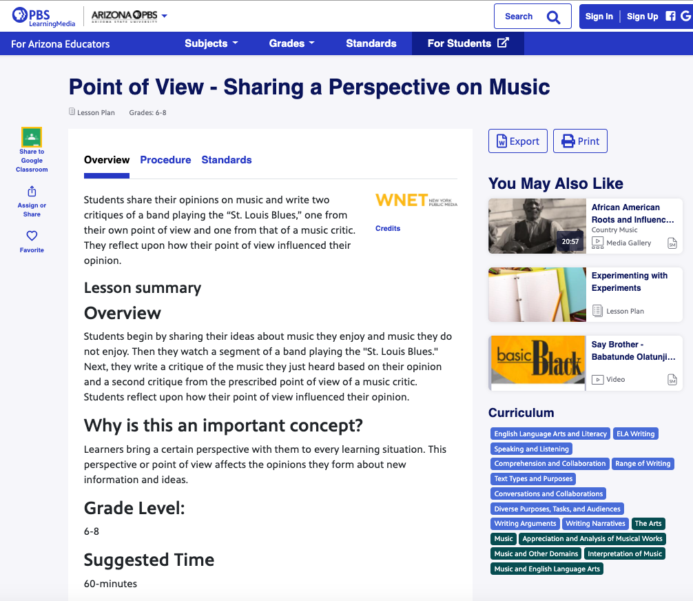 PBS Learning Media: Point of View - Sharing a Perspective on Music