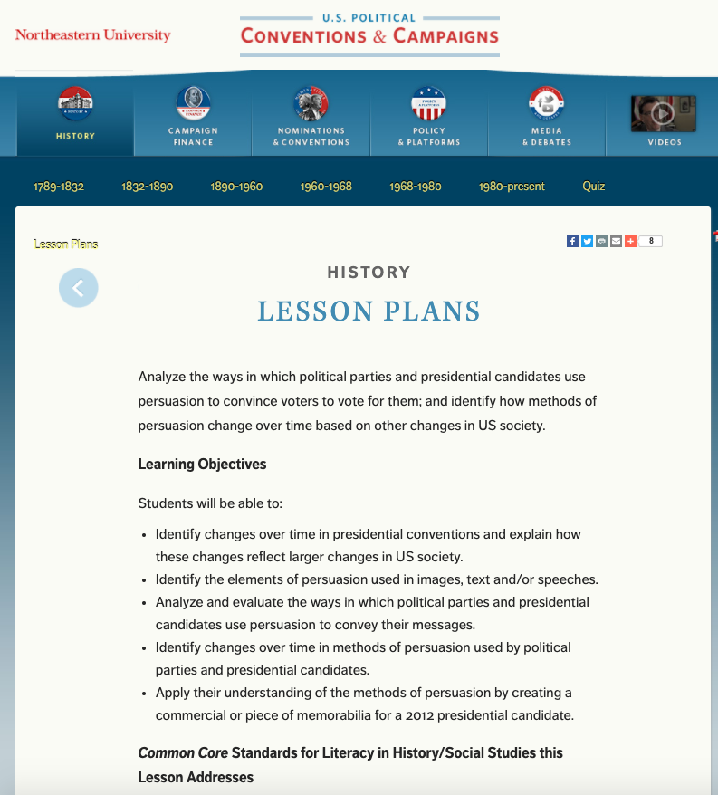 Source: http://conventions.cps.neu.edu/history/lesson-plans/ (License: Protected by Copyright (c) [i.e. screenshot])