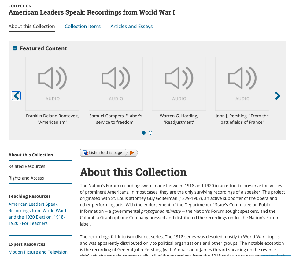 Library of Congress: Recordings from WWI