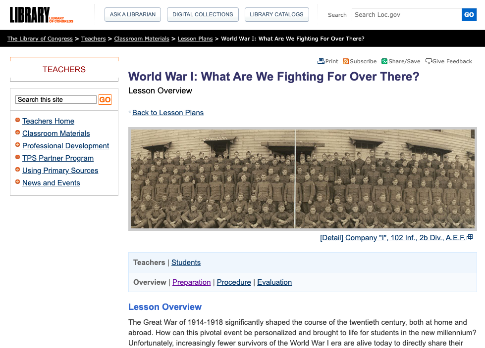 Library of Congress: World War I: What Are We Fighting For Over There?